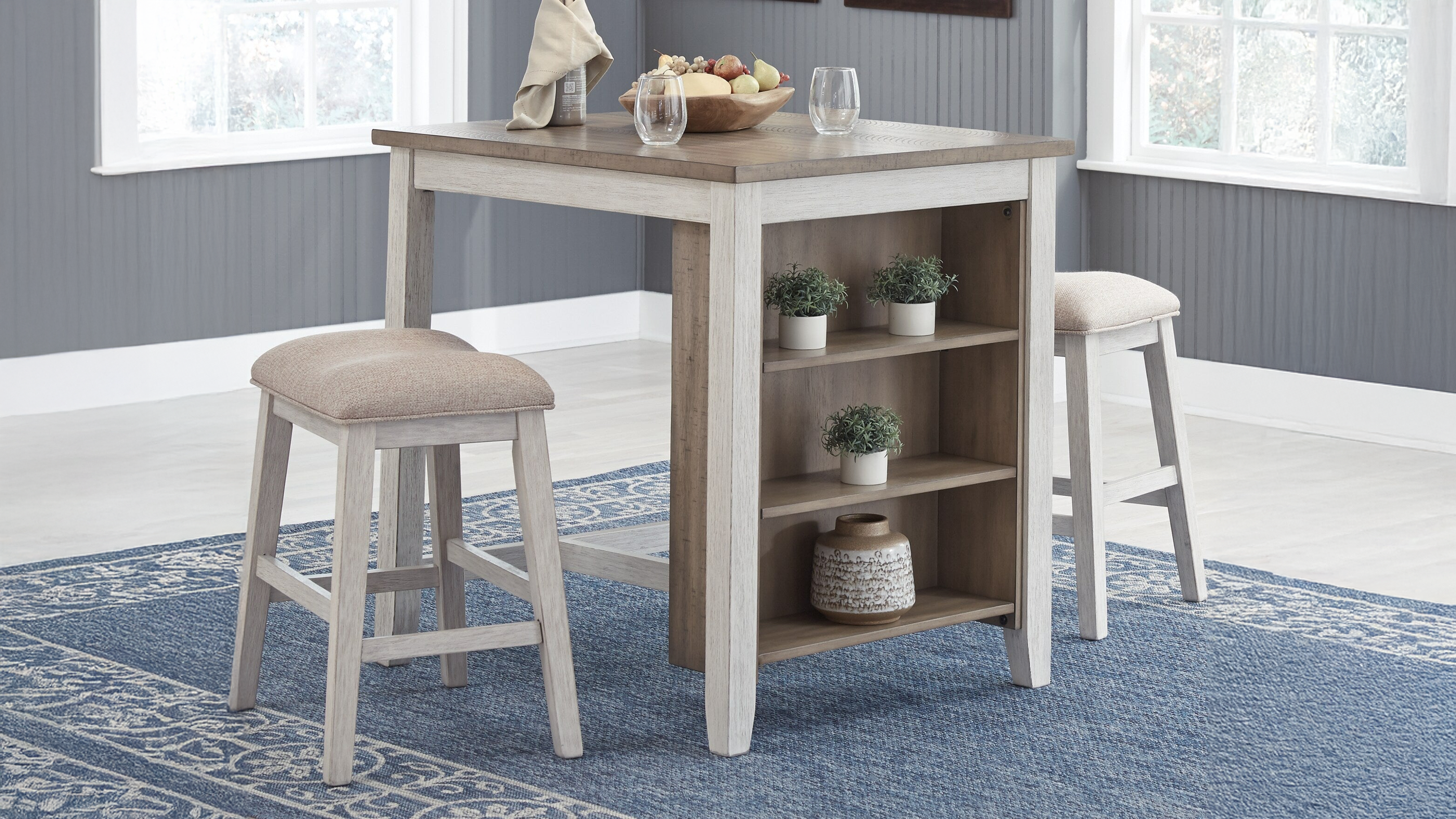 Elevated surfaces create a more open feel while doubling as space for dining, working, or gathering.