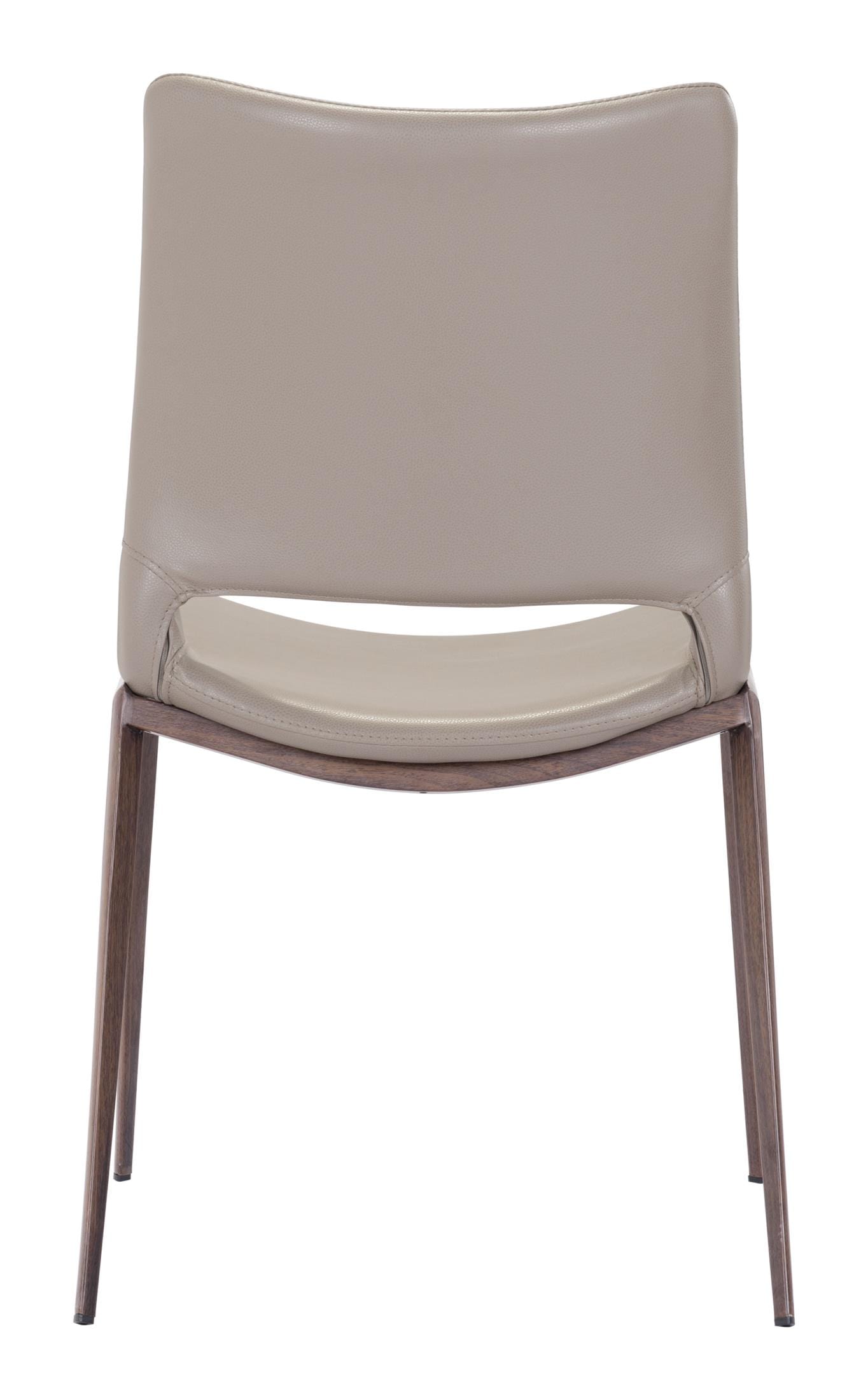 This sleek armless dining chair lets you sit back and relax in comfort. Its perfectly pitched back cradles you, while the sturdy faux wood frame supports your every move. The brown faux leather seat is beautifully stitched adding a designer detail to a simple profile. Protective plastic feet will keep your floors from scratching. Gorgeous around your table, or pulled up to the desk in your home office.