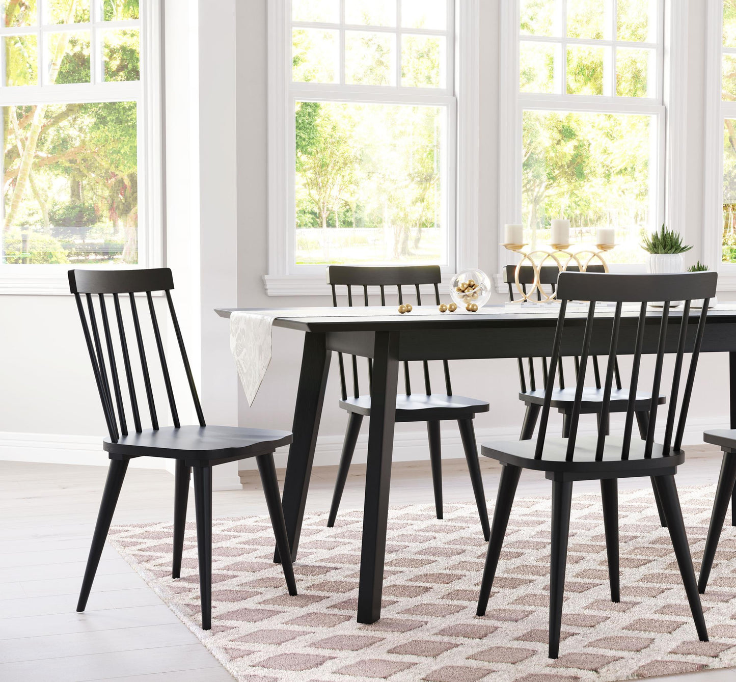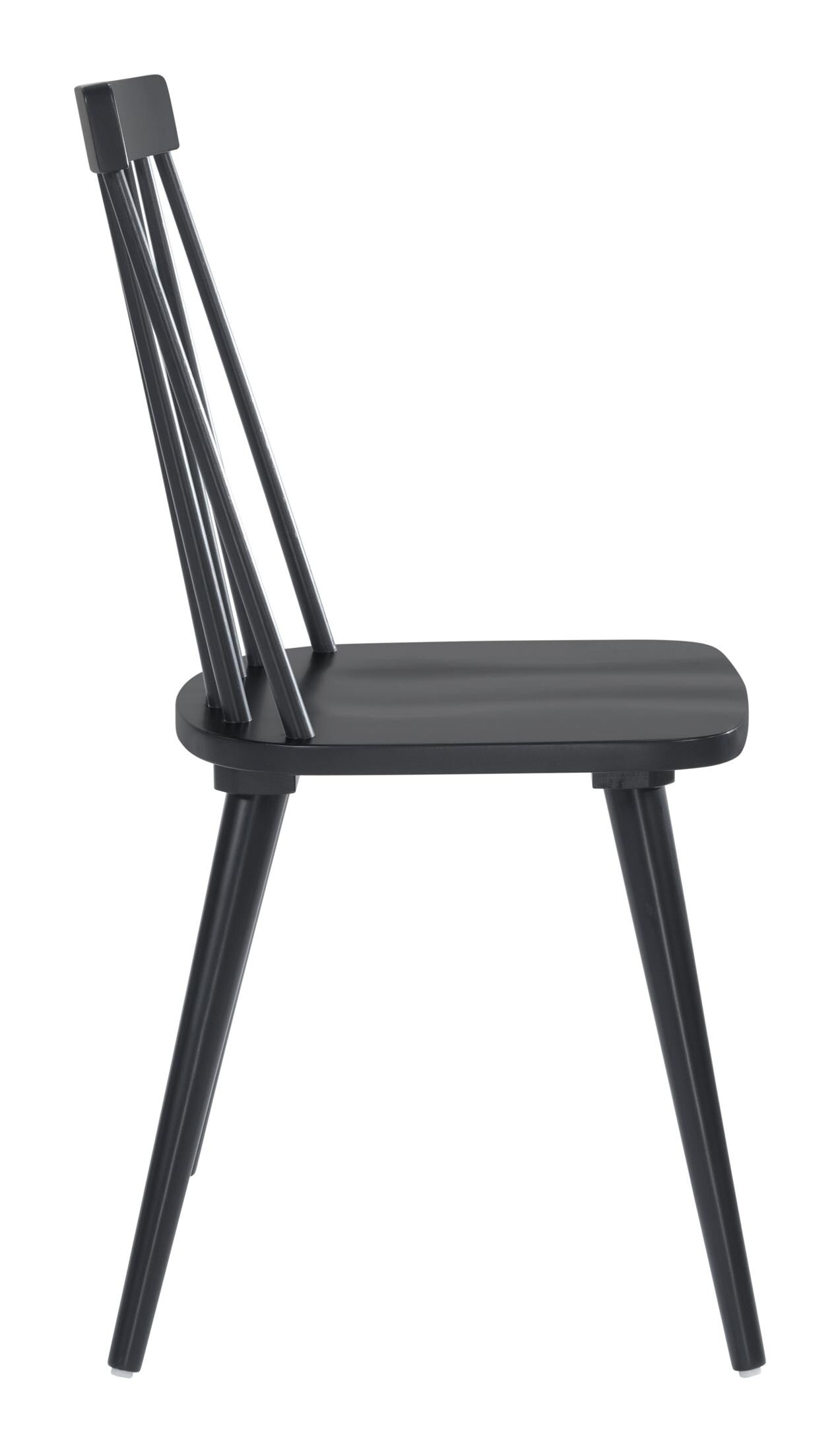 The Ashley Chair is play on the classic Windsor chair, with its time-honored spindles, saddle seat and curved back. Made of rubberwood, the chair is stained deep black for contrast. Perfect for a spin on any mid century modern, urban, or industrial space.