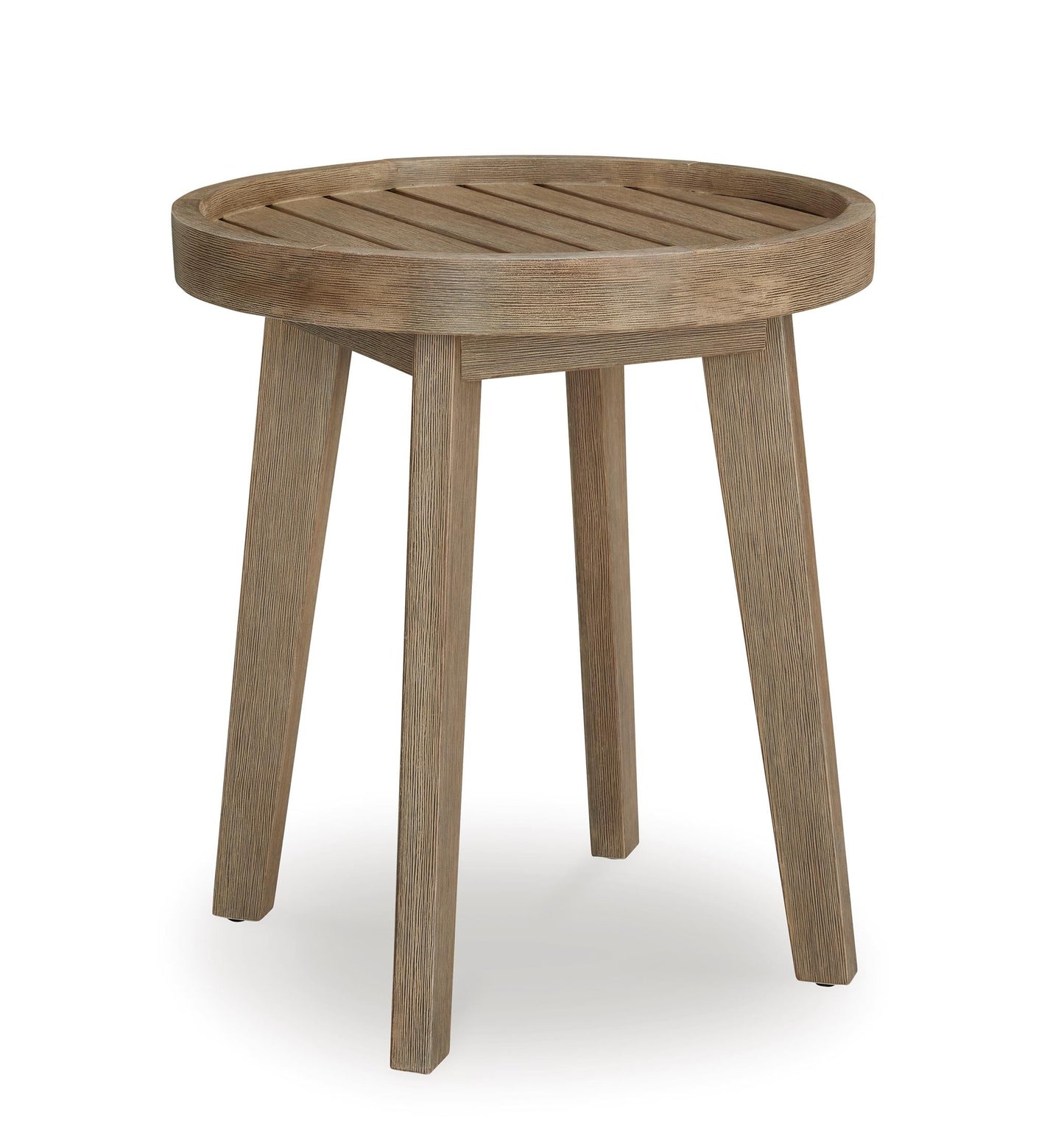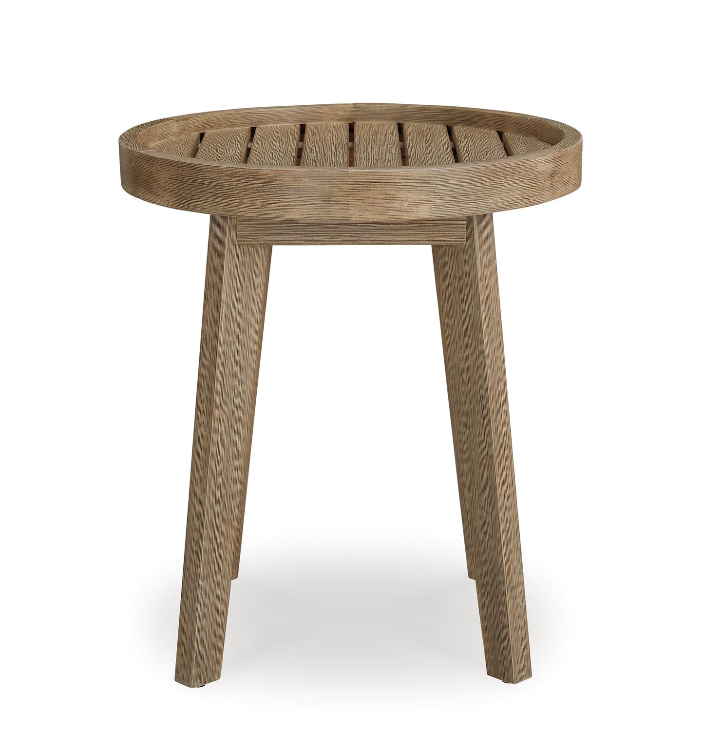 This outdoor end table takes casual design to new heights. Crafted with durable eucalyptus wood, this piece weathers the seasons beautifully with exceptional form and function while keeping your essentials within reach.