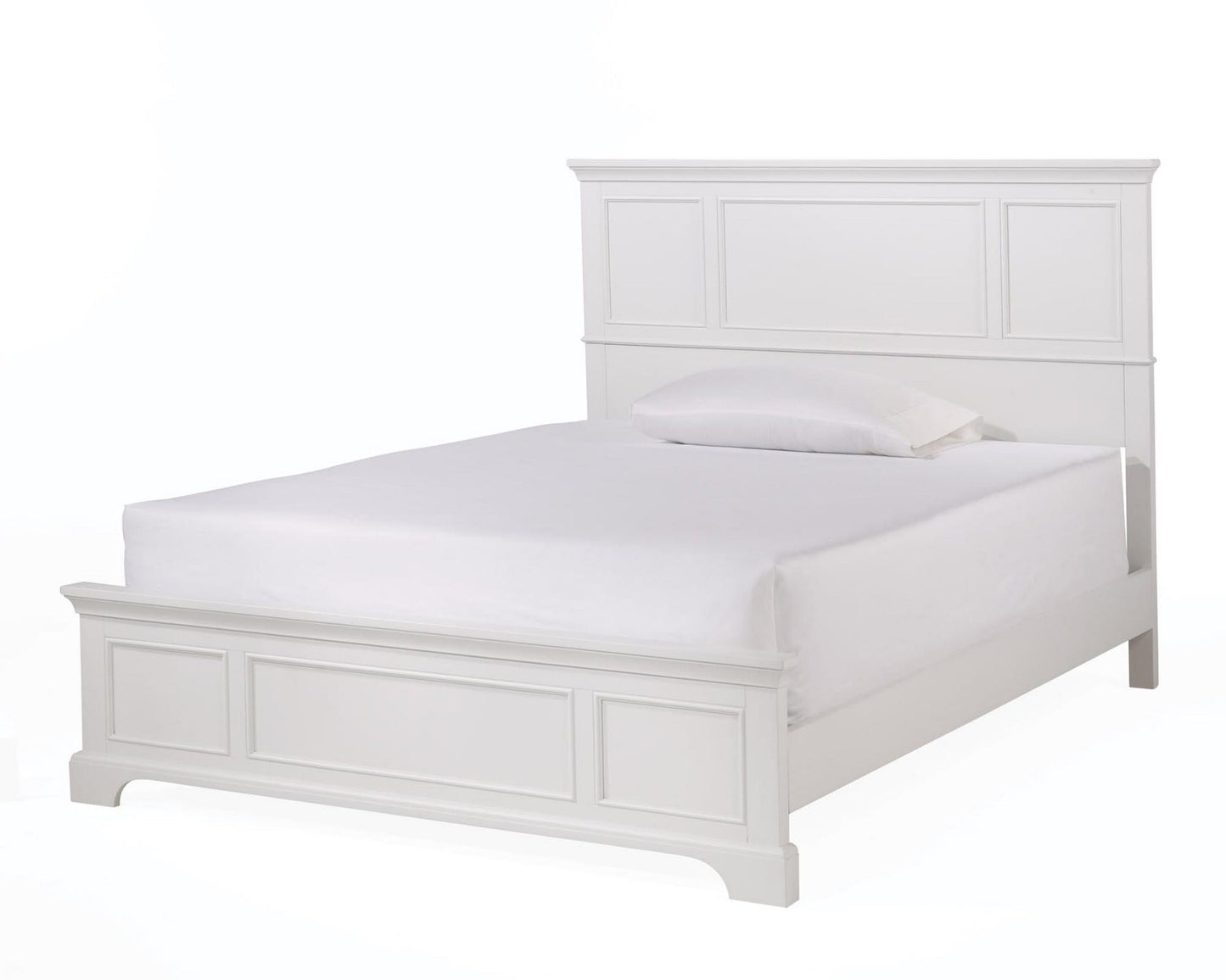 This homestyles Century queen bed is constructed of poplar hardwood and engineered wood in a rich white finish. Features include raised panels on the headboard and footboard. This set includes a queen headboard, footboard, and rails.
