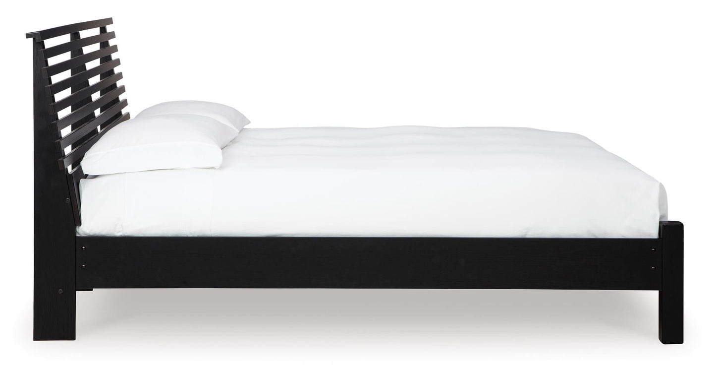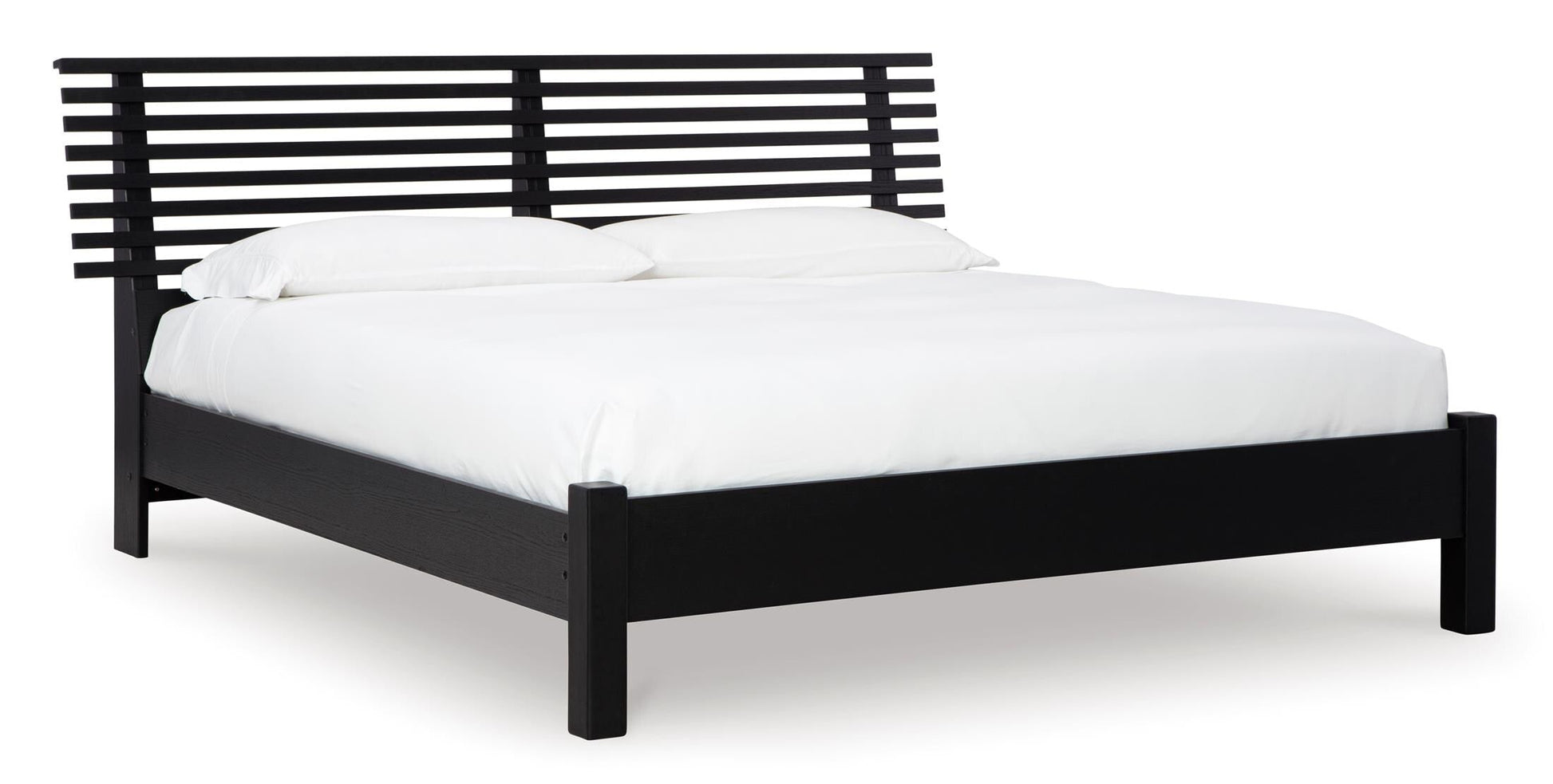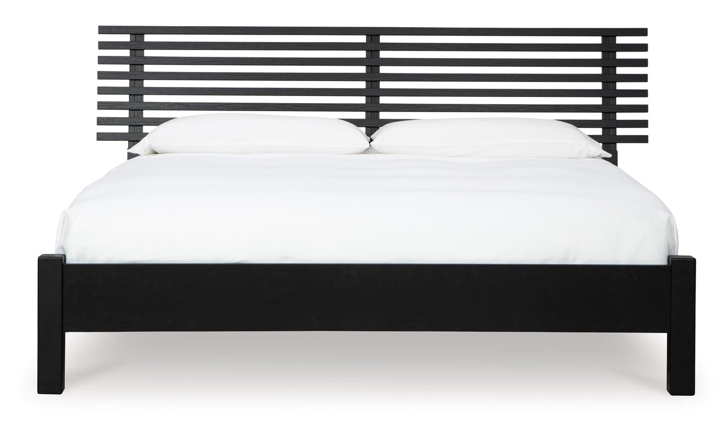 Sophisticated style for the savvy shopper. This panel bed prioritizes affordable, on-trend design. Its subtle replicated texture recalls the natural beauty of wood, highlighting the slatted styling. And a matte black finish savvily suits different approaches to modern aesthetics. Mix and match with light and bright hues, or pair with other dark tones for a moody look.