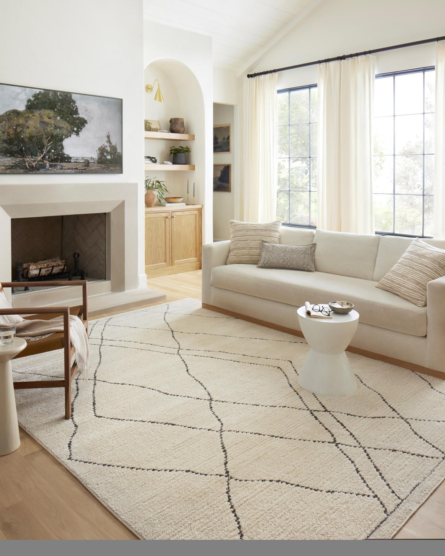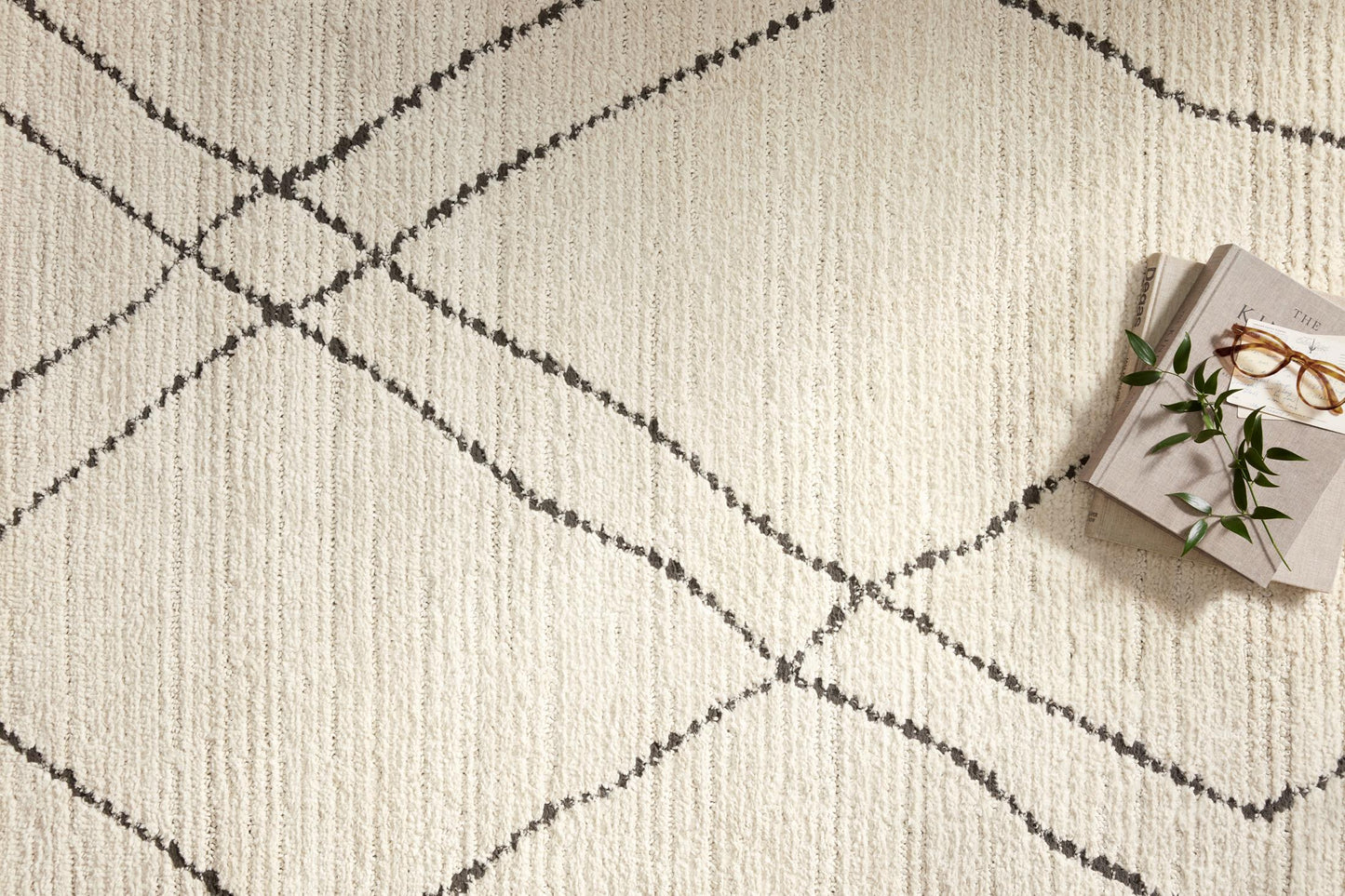 Elegant and understated, the Fabian collection modernizes diamond-shaped Moroccan rug motifs in neutral colors. The rug’s careful construction features a darker undertone beneath the lighter pile, creating a subtle high-low texture that adds visual depth while feeling soft underfoot. Power-loomed of durable polyester, an ideal material for high-traffic living rooms, bedrooms, and offices.