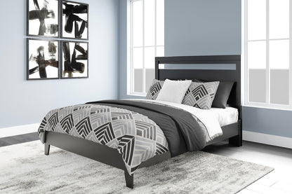 If you’re a fan of clean, crisp and contemporary interiors, rest assured this queen panel platform bed suits you. Its linear profile is enhanced with a matte black finish with subtle replicated wood grain. The headboard's peekaboo cutout adds a cut-above element. Hard to believe such a high-style aesthetic can be so attractively priced. Best of all, our innovative bed-in-a-box shipping system delivers your new bed right to the door.