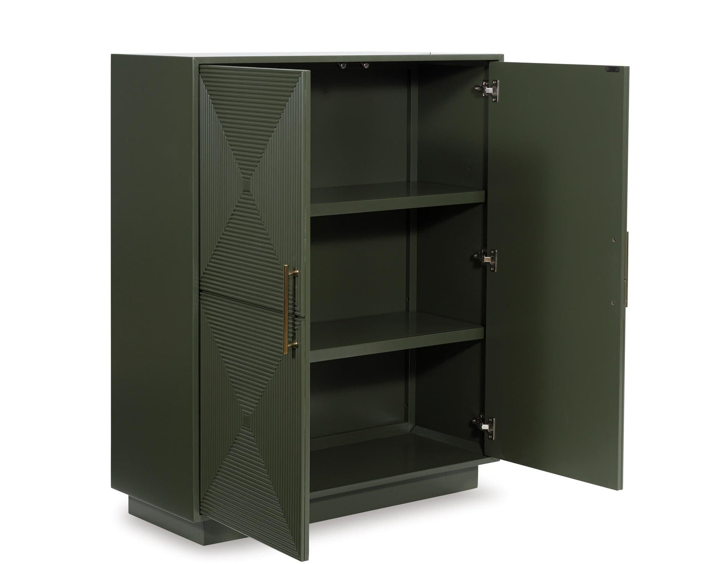 dd valuable storage to any room with the Geirwood accent cabinet. The two doors conceal 3 shelves to store away and organize just about anything! This versatile piece can be used in your living room to store away extra throws and pillows or use in your home office to organize extra office supplies. The cabinet can also be used as a stylish coffee bar or bar cabinet. A wall anchor kit is included to secure the cabinet to the wall and prevent tipping injuries.