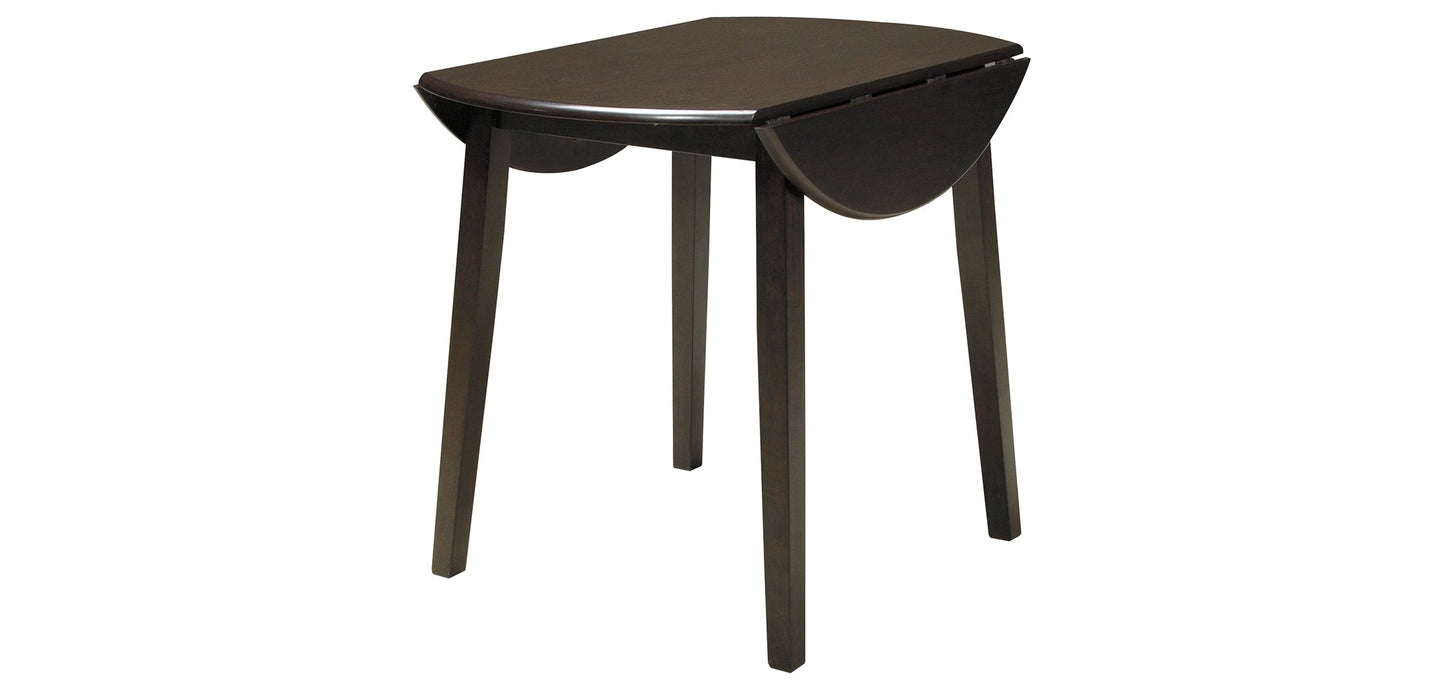 You might be short on space, but you can still long for style. If contemporary tantalizes your taste buds, savor the beauty of this sleek drop leaf dining table. Dark and dramatic, it packs plenty of appeal into a compact design.