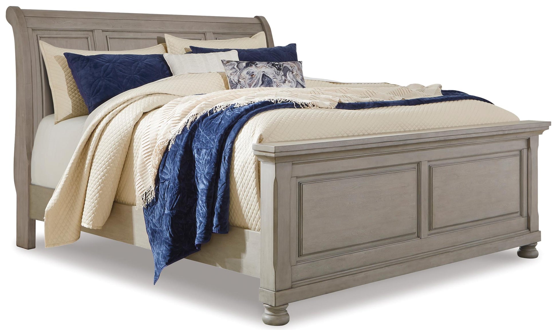 Satisfying your taste for tradition, the Lettner king sleigh bed sports serene sophistication. Forever classic design details like inset panels and bun feet are so easy to love. A burnished light gray finish elevates the look with modern sensibility, so you can sleep in style.