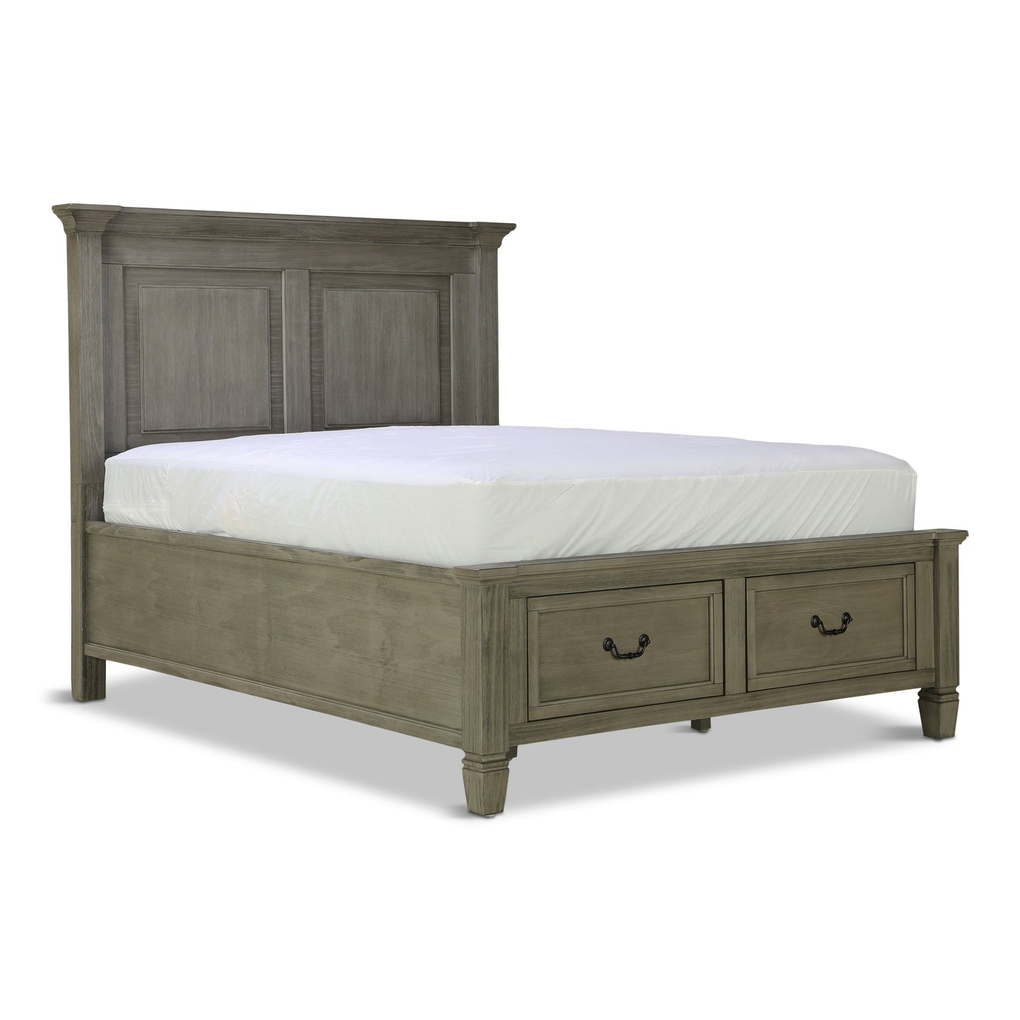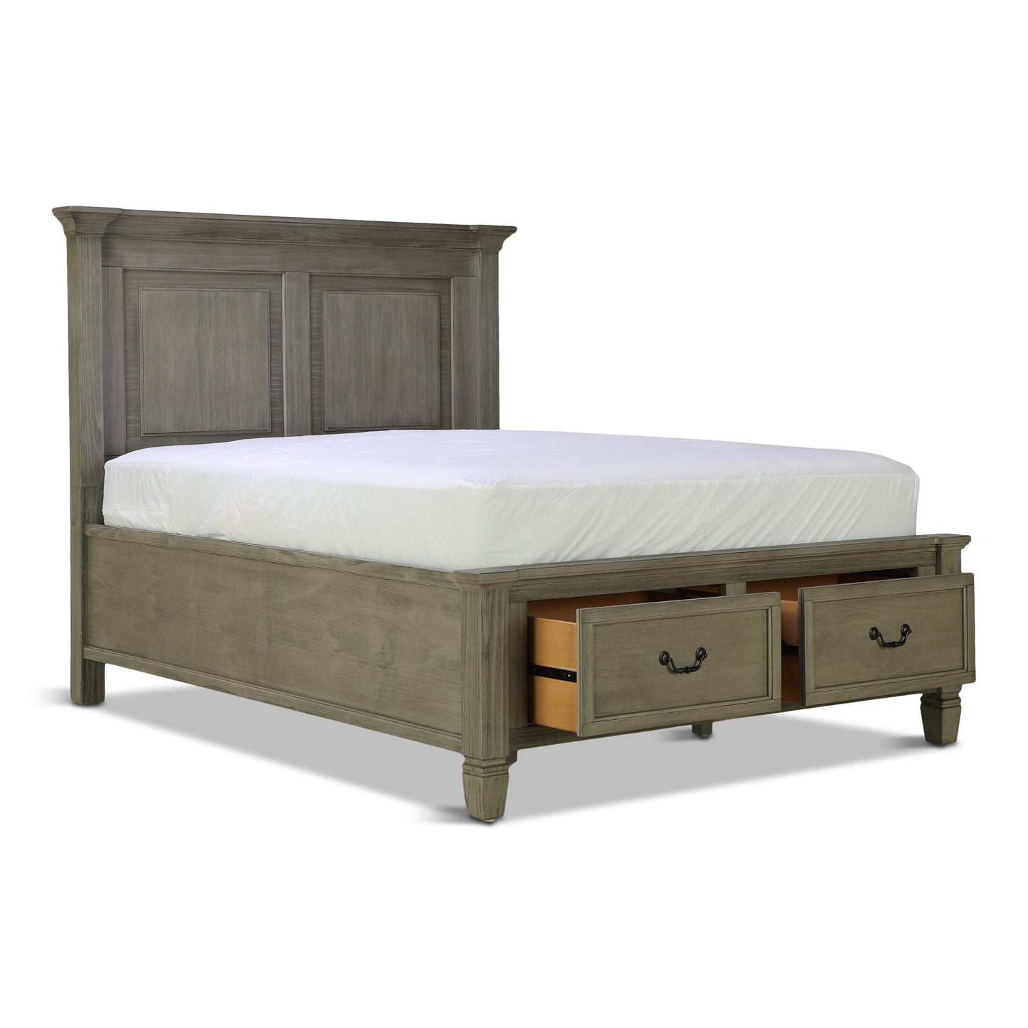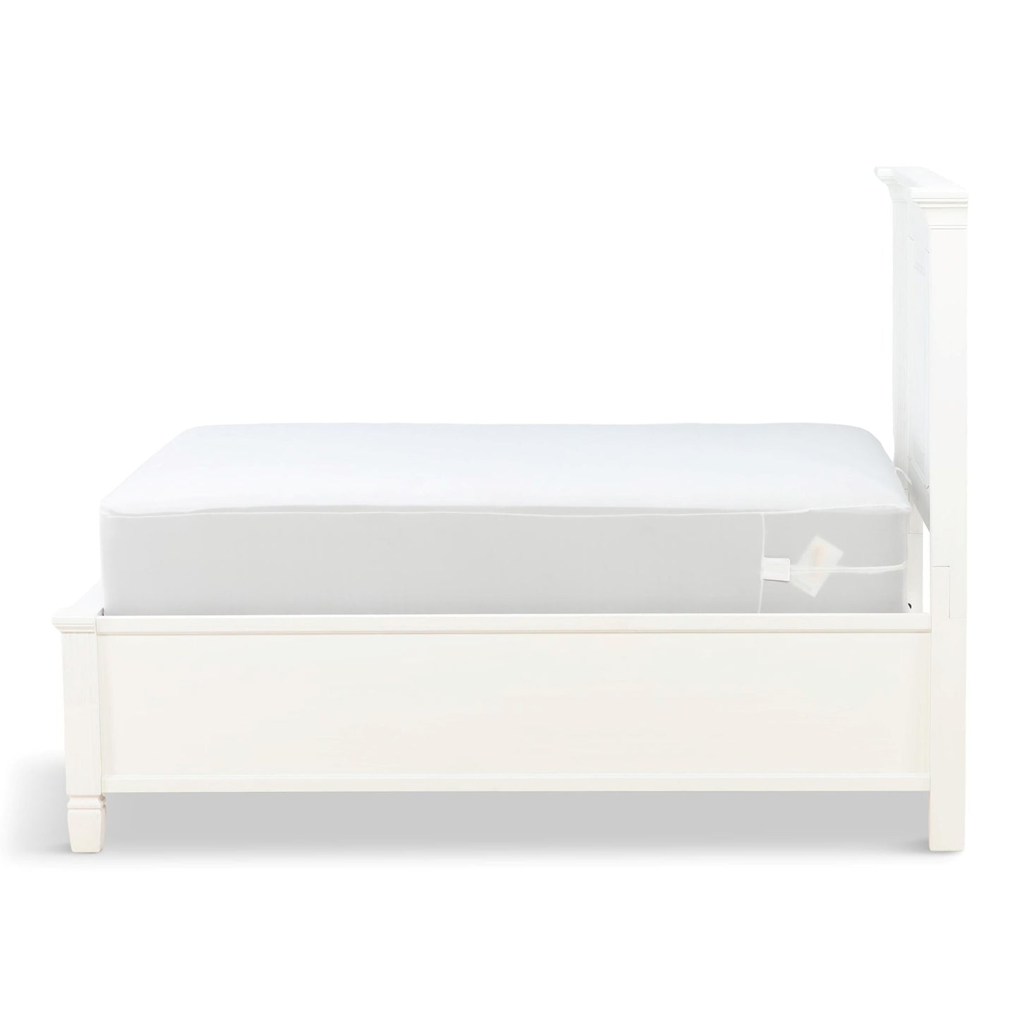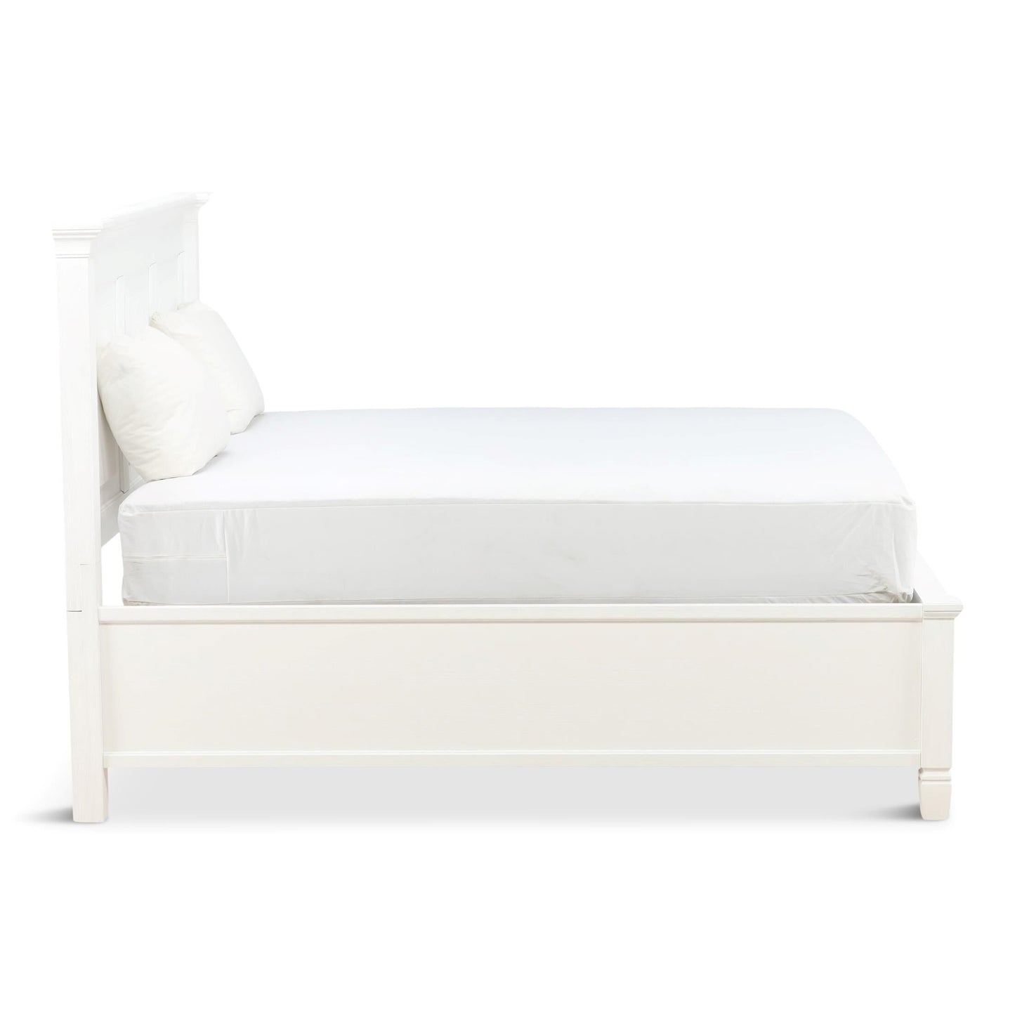 The Orchard King Storage Bed is warm, inviting and fashionably chic, creating the retreat of your dreams. The vintage inspired collection features a multi-step, antique white hand applied finish. Unique details such as the mantel ends on the panel headboard, tapered feet and antique hardware add to the overall charm. Extra storage is incorporated, with the storage footboard panel bed.