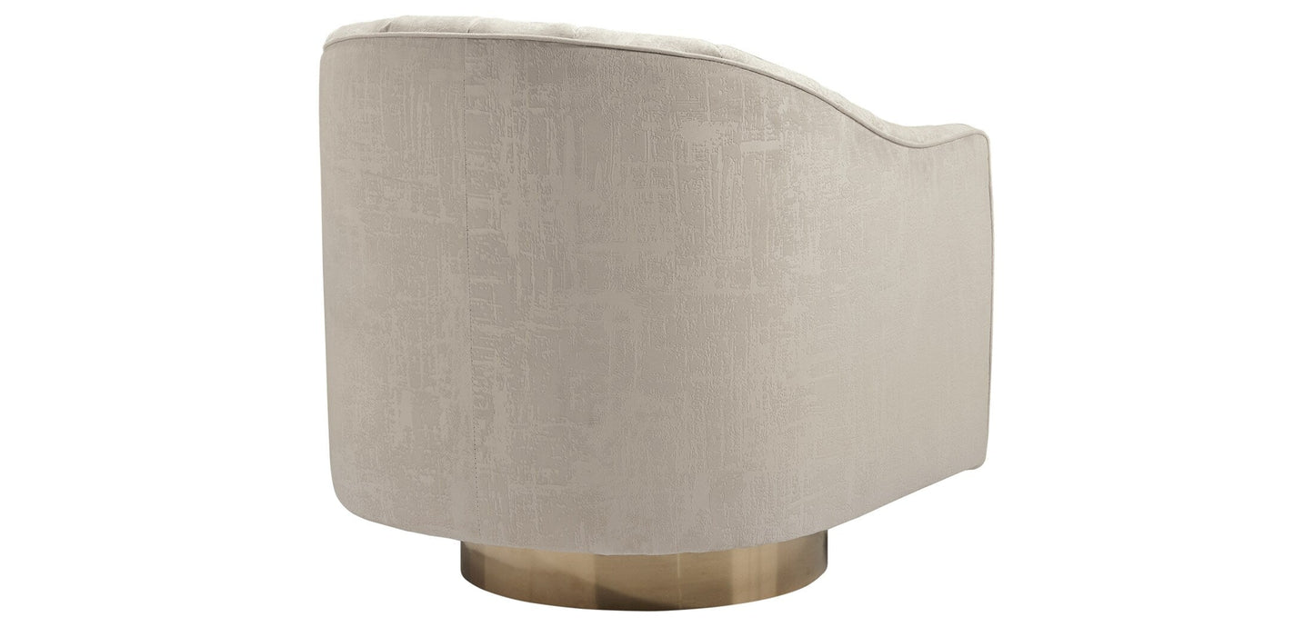 Textured velvet gets a contemporary edge in this swivel accent chair. Neutral enough to fit into any space, the subtle design of the upholstery brings modern style to the surface.
