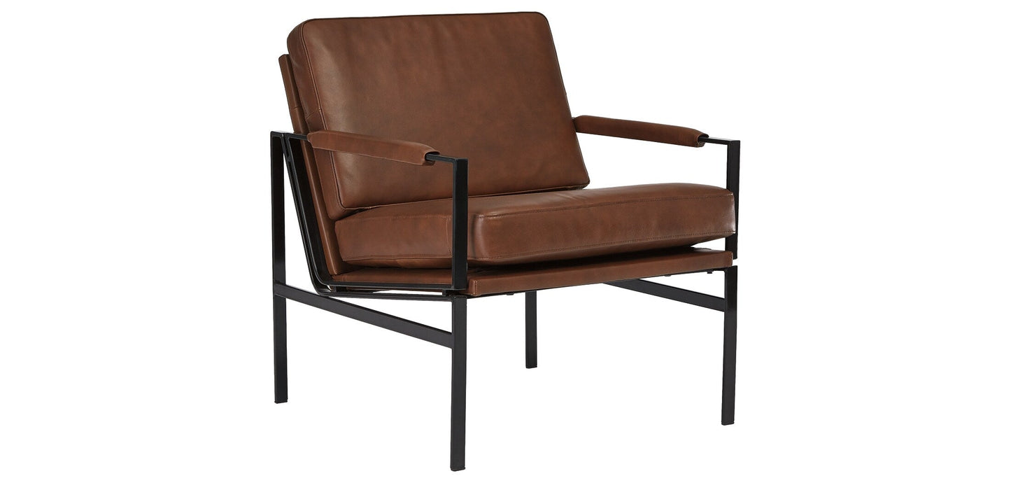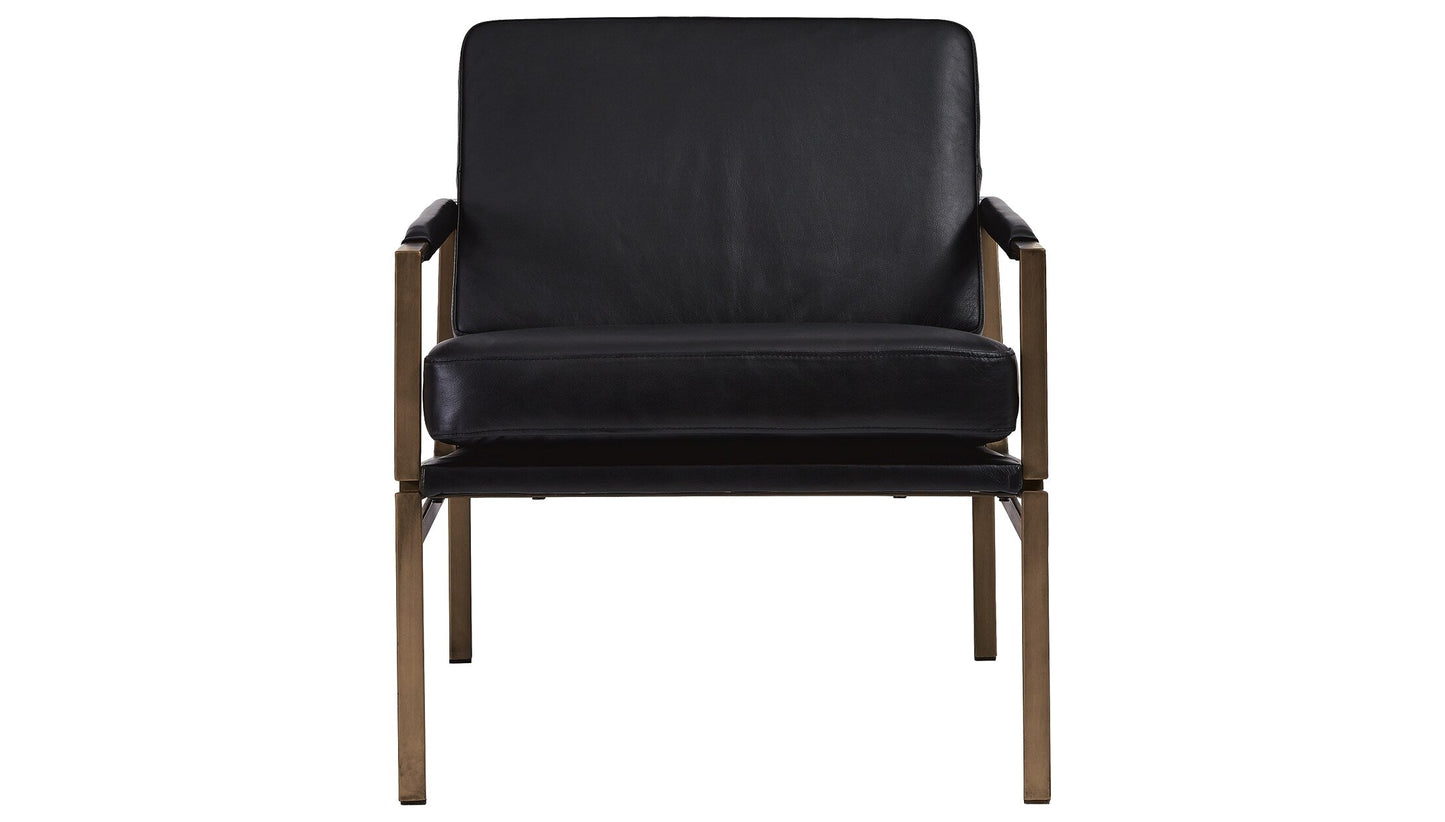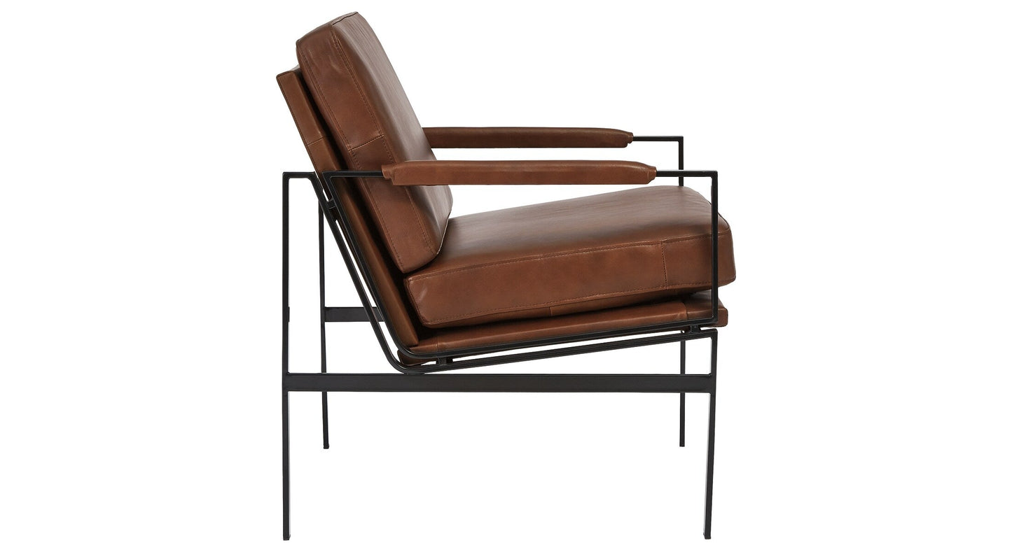 With its ultra-modern vibe and ultra-indulgent feel, the Puckman accent chair impresses with high-end looks priced to entice. Dark metal frame is a chic complement to the richly appointed brown leather seating. Talk about the lap of luxury. With its oil-rubbed bronze-tone finish and urban industrial feel, the Puckman accent chair impresses with high-end looks priced to entice.