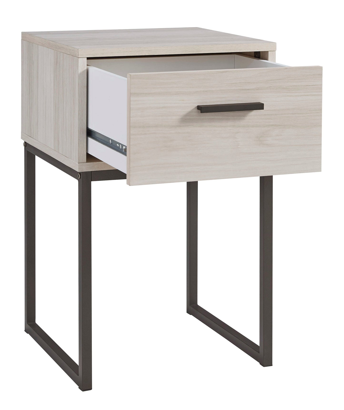Light and bright, this nightstand is inspired by chic design. A light natural finish over replicated oak grain offers an authentic touch to this so-cool piece. It beautifully blends the hues of natural living with the edginess of your modern lifestyle.