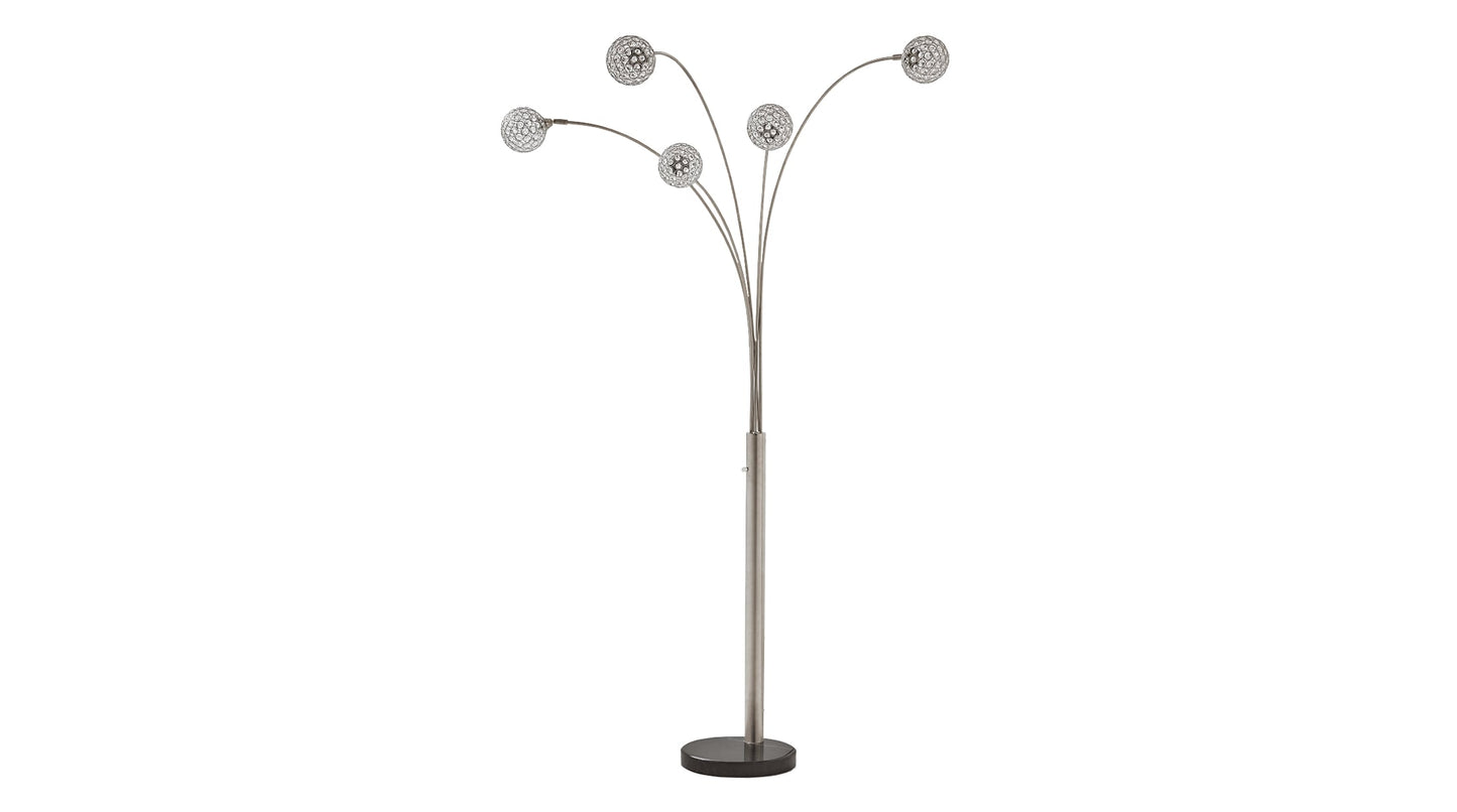 Have a ball bringing highly contemporary style to a space with this 5-light floor lamp. Crystal-like acrylic balls spread light in such an illuminating way. Chrome-tone metal and black marble richly enhance the designer aesthetic.